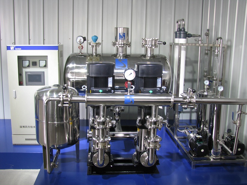 淄博四方產(chǎn)品展廳總面積近150 平方米,歷時(shí)將近一個(gè)月,投資幾十萬元。整個(gè)展廳以公司整體產(chǎn)品為主線,貫穿始終。步入展廳,首先映入眼簾的是體現(xiàn)公司實(shí)力和水準(zhǔn)的整套機(jī)組,依次從左到右為水箱式無負(fù)壓自動(dòng)給水設(shè)備、節(jié)能型無負(fù)壓自動(dòng)給水設(shè)備、雙系統(tǒng)直飲水無負(fù)壓自動(dòng)給水設(shè)備等。